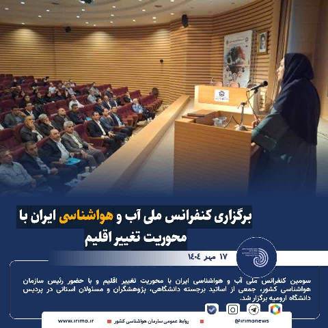 سومین کنفرانس ملی آب و هواشناسی ایران با محوریت تغییر اقلیم و با حضور رئیس سازمان هواشناسی کشور، جمعی از اساتید برجسته دانشگاهی، پژوهشگران و مسئولان استانی در پردیس دانشگاه ارومیه برگزار شد.